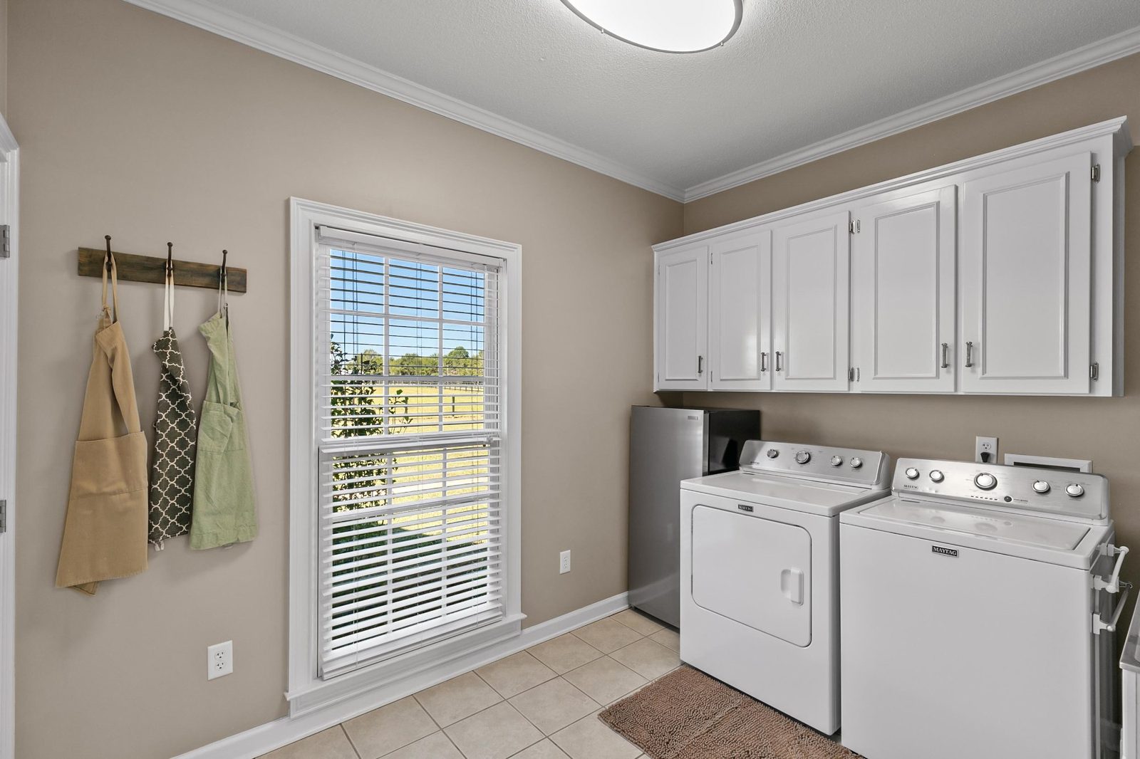 Porch swings that face the pasture. Landscaping beds designed with intention — not just maintained, but reimagined with color and breathing room. Oversized two-car garage plus additional storage.